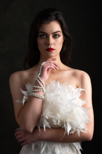 Książka, chusta, szal, apaszka – pomagają przy pozowaniu, pozwalają zająć dłonie i okrywać ciało tworząc tajemniczy klimat na zdjęciu.